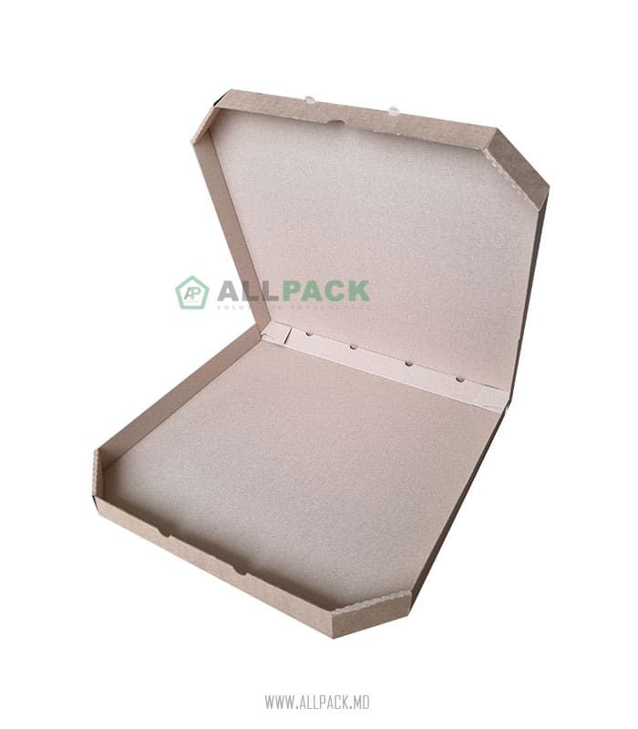 Va propnem cutii pentru pizza de diametru mare – 450 mm. Este fabricata di carton ondulat de o calitate sporita pentru a asigura o ambalare sigura pentru asa tip de pizza. Cutii pizza mari se poate de fabricat la comanda si deasemenea personalizate.