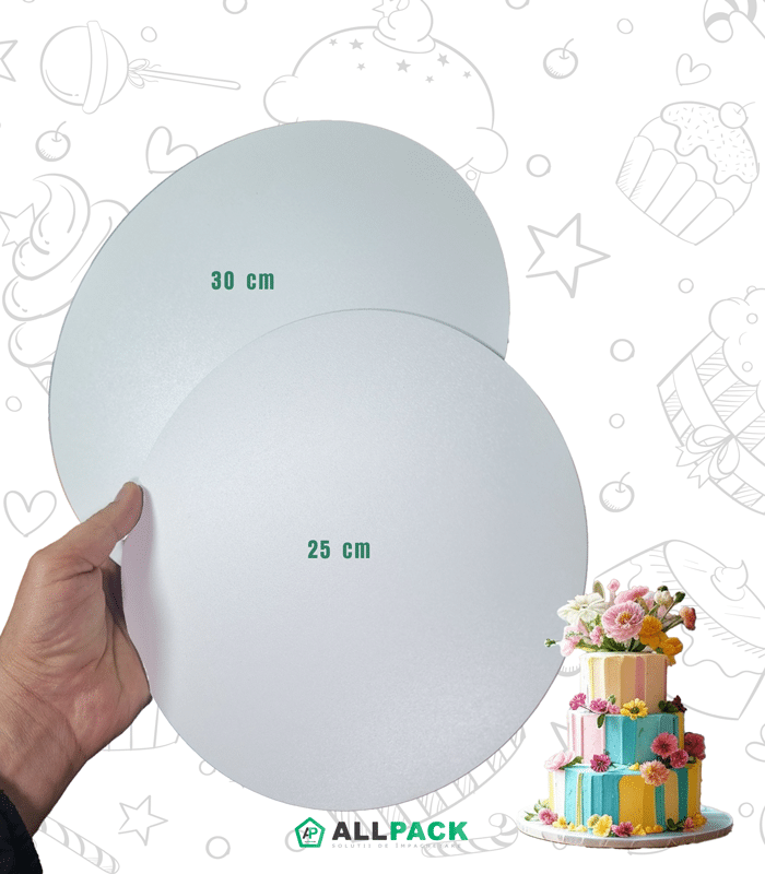 🔹 Material rezistent și durabil – HDF-ul de 3 mm asigură o suprafață stabilă, care nu se îndoaie și nu se deteriorează ușor sub greutatea tortului.